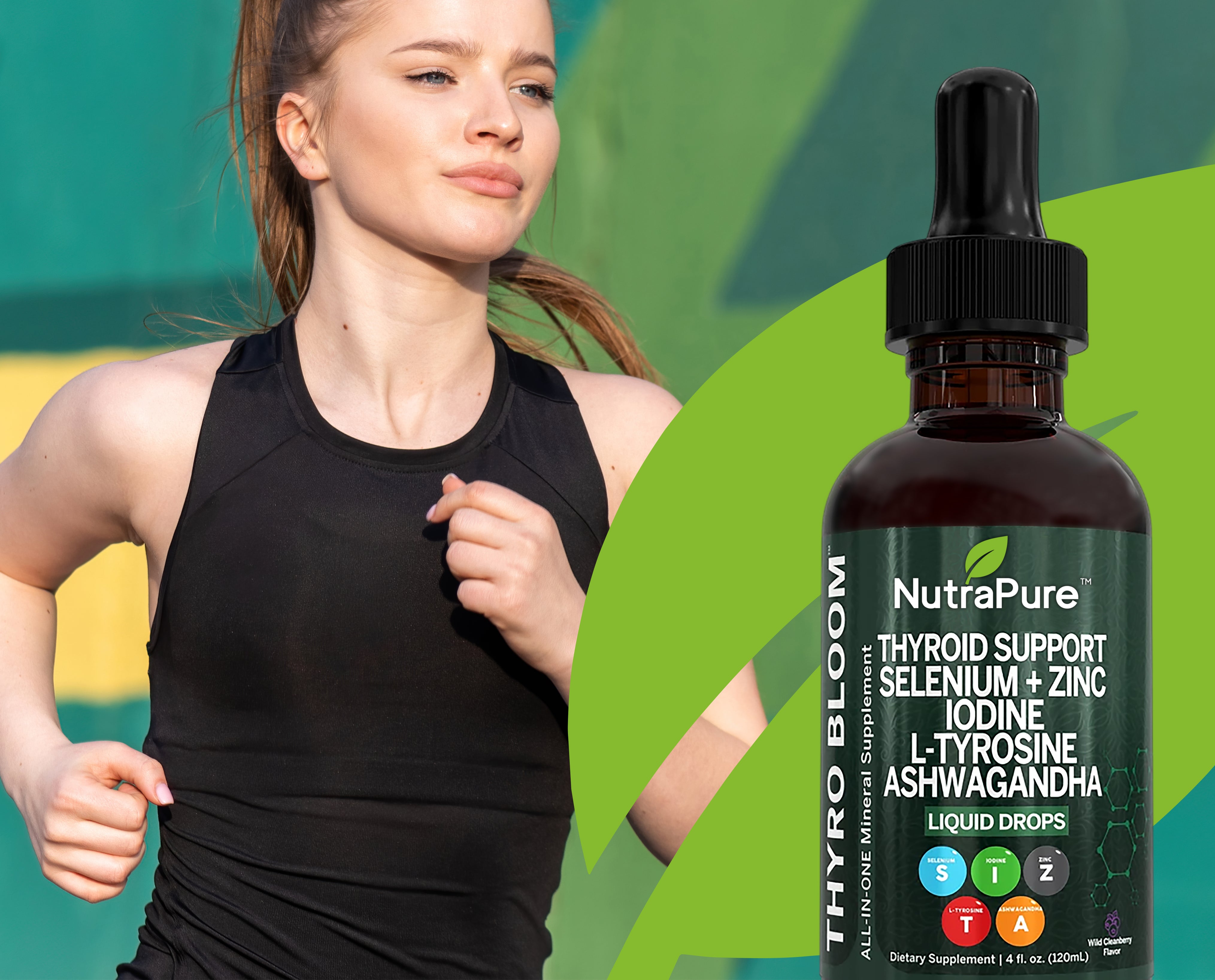 NutraPure™ Thyroid Support is a liquid blend of iodine-rich kelp, ashwagandha, and L-tyrosine that supports healthy thyroid function, steady energy, and hormonal balance, helping you feel vibrant, focused, and in control.