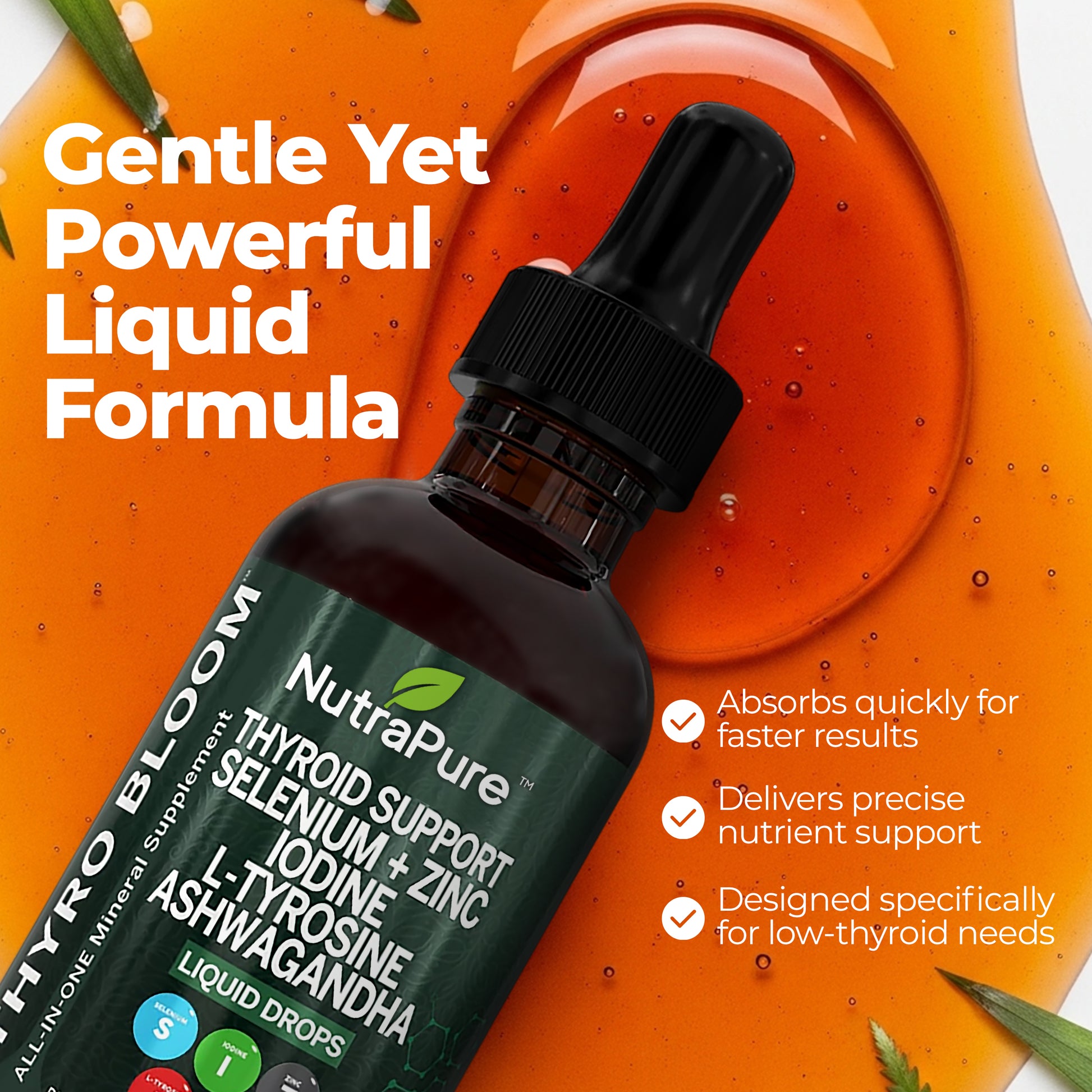 Every drop is a thoughtful blend of 21 nutrients, botanicals, and minerals. Each plays a unique role in supporting your thyroid, metabolism, and overall vitality, creating a complete formula for thyroid wellness.